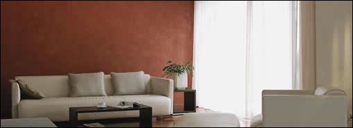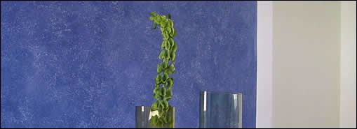 Die Spachteltechnik. Ein Mineralspachtel auf Kalkbasis (Baubiologisch natürlicher Werkstoff) mit Glanzvermögen je nach Verarbeitung. Die Spachteltechnik ist für fast jeden Stil geeignet und hat eine besondere Eleganz. Für die Spiele mit indirekter und direkter Beleuchtung fast schon ein muss für alle die aus Ihren Räumen mit etwas Raffiniertheit das BESONDERE machen wollen. Es lässt sich spielend leicht auch ein Marmoreffekt erzielen, in dem man bei dem letzten Spachtelgang (Fleckspachtelung) zwei, anstelle von nur einer Farbe aufträgt. Es ist auch für Feuchträume wie z.B. Badezimmer und Küchen in Verbindung mit Cera del Vecchio eine aus Wachs und Seife angereicherter Mischung möglich, die zuletzt auf Wand oder Deckenfläche mit einem weichen Tuch aufgetragen wird. |