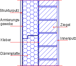 Gebäude, die dem Wärmeschutz-Standard der 1970er Jahre entsprechen, verbrauchen heute ein Mehrfaches an Heizenergie als Häuser, die den Standard von 1995 erfüllen. Bis zu 75% der Wärmeverluste gehen dabei auf das Konto der ungedämmten Außenwände. Grundsätzlich besteht ein WDV-System aus 3 Hauptkomponenten, die an einer tragenden Hauswand angebracht werden - nämlich dem Dämmstoff (wie z.B. Polysterol-Partikelschaum, Steinwolle oder Mineralschaumplatte), der Armierung zur Verstärkung der Dämmplatten bestehend aus einer Armierungsmasse und einem Armierungsgewebe aus Glasfaser (damit wird eine spätere Rissbildung verhindert) sowie der Schlussbeschichtung bzw. der Außenhaut aus Putze, Holz, Keramik, Klinker oder Metall.
